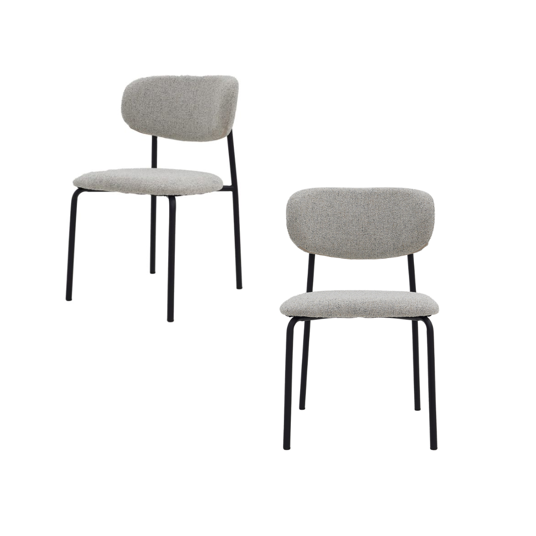Textura Bouclé Premium: O assento e o encosto são revestidos em tecido de trama rica (estilo bouclé ou linho grosso), que oferece uma experiência sensorial extremamente confortável e sofisticada.