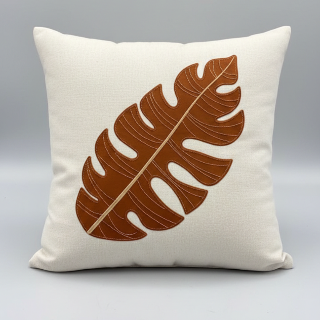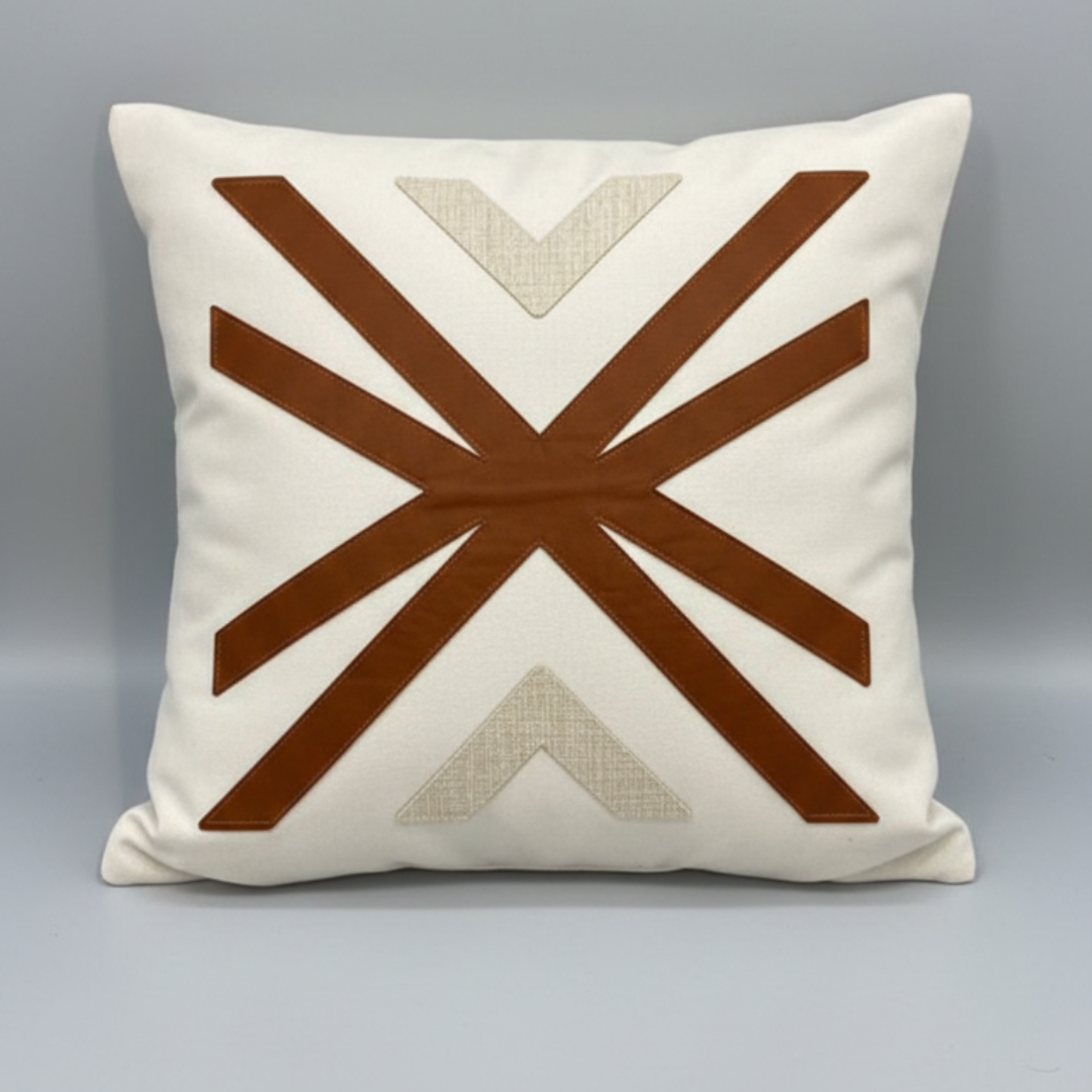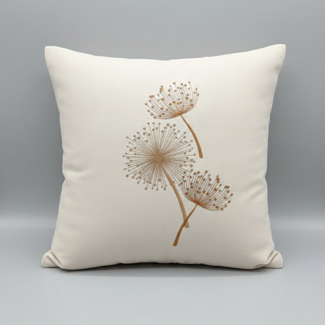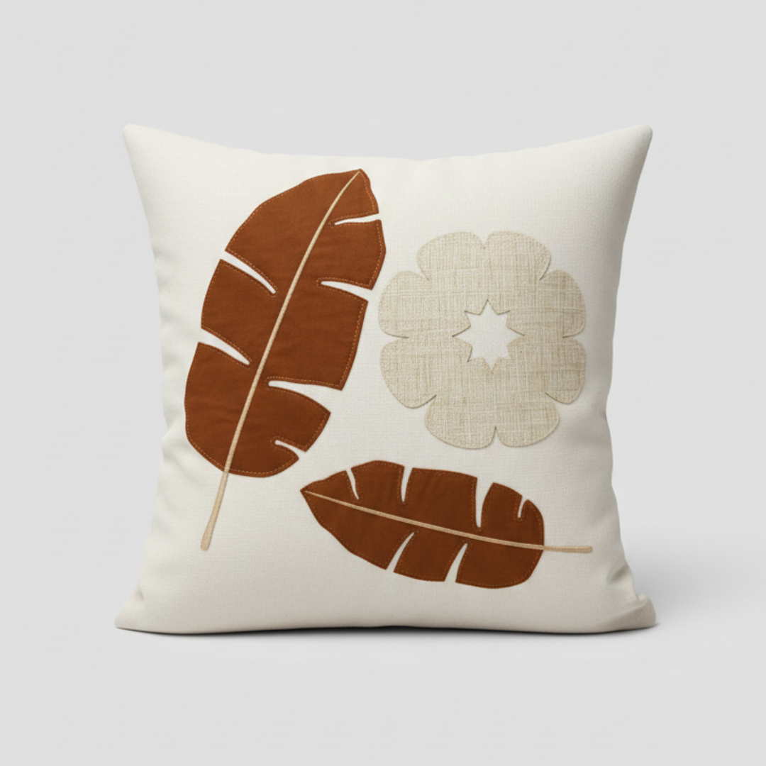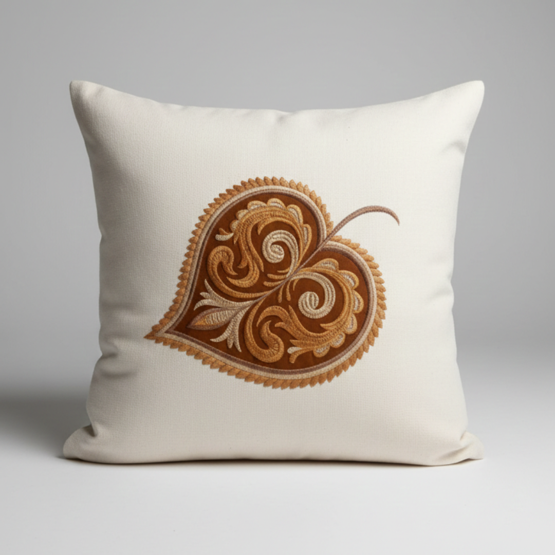Adicione textura e personalidade à sua sala ou quarto. Esta peça é confeccionada em tecido de base clara com acabamento impecável, apresentando bordado com fios acetinados em degradê de marrom e dourado.