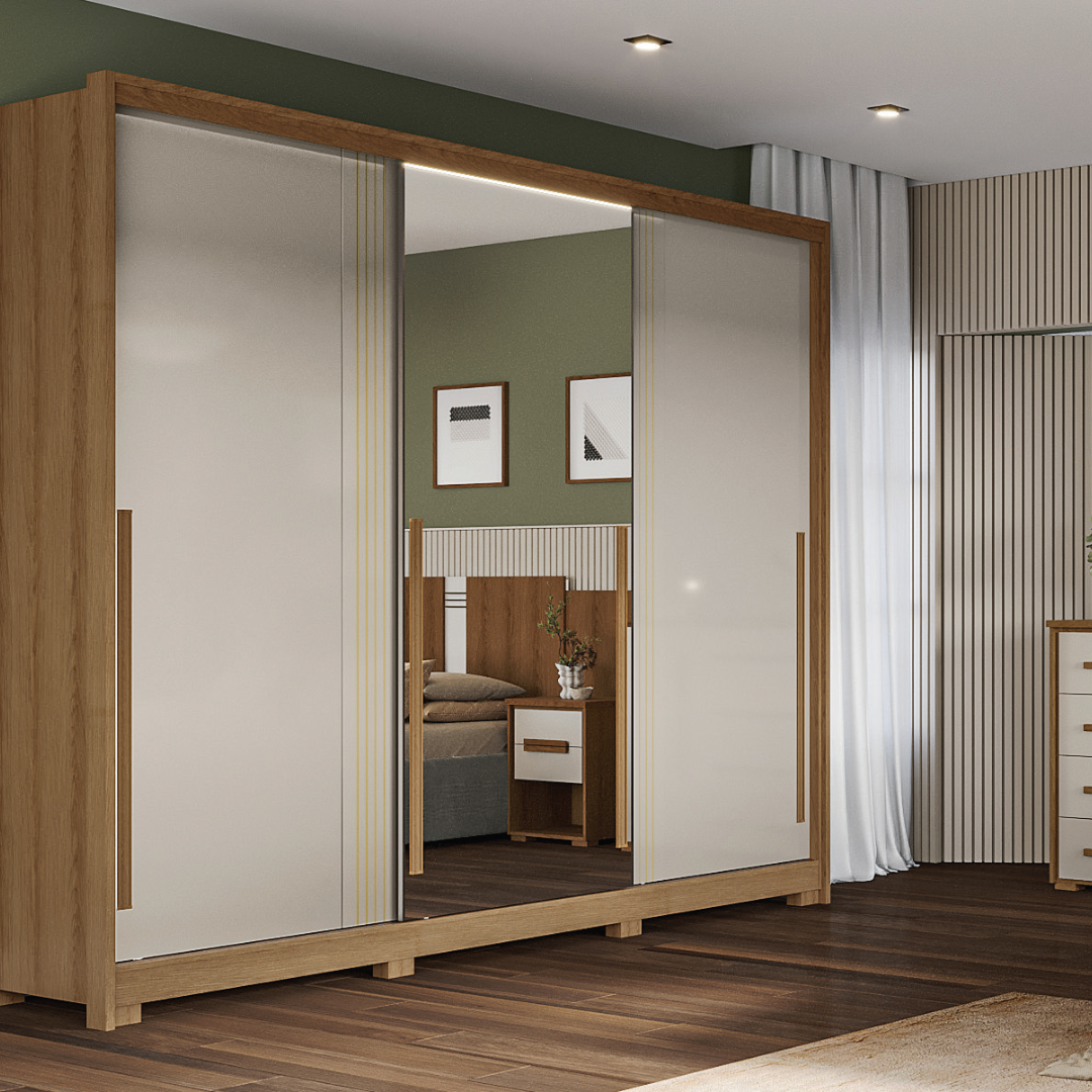 Um lindo guarda-roupas para chamar de seu! Este é o New Guarapari, que encanta por sua beleza e também pela funcionalidade. Nesta versão com 3 portas deslizantes, uma delas vem com espelho, um acessório muito demandado, dado seu charme e sua função no  dia a dia.