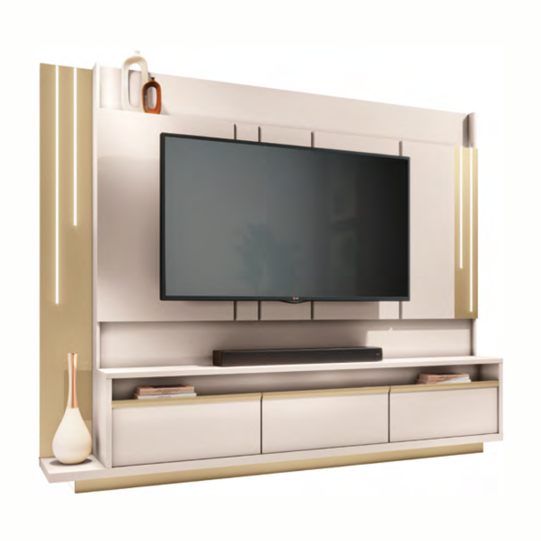 Painel para TV com detalhes chanfrados