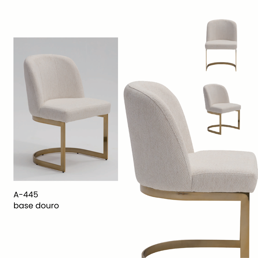 O grande destaque da Cloe é sua Base Douro em formato de “C”. Este design inteligente não apenas confere um visual ultra-contemporâneo e leve, mas também proporciona uma leve flexibilidade ao sentar, aumentando a sensação de bem-estar. O acabamento dourado da base reflete a luz com elegância, trazendo um ponto de brilho sofisticado ao ambiente.